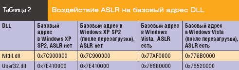 Hace unos días en una entrevista con el co-presidente de la corporación Microsoft Jim Allchin se negoció el problema de seguridad del sistema Windows Vista, a diferencia de Windows XP SP2 existente. Jim Allchin comentó que en Vista aparecerían dos opciones de seguridad clave que no pueden ser añadidas a Windows XP SP2. Primero, es el conjunto “Randomización del espacio de direcciones” (Address Space Layout Randomization, ASLR). Gracias a ASLR para cada inicio del sistema operativo los datos críticos se guardan en varios sitios de la memoria. Esto dificulta los ataques porque el código del sistema resulta estar en un sitio aleatorio.